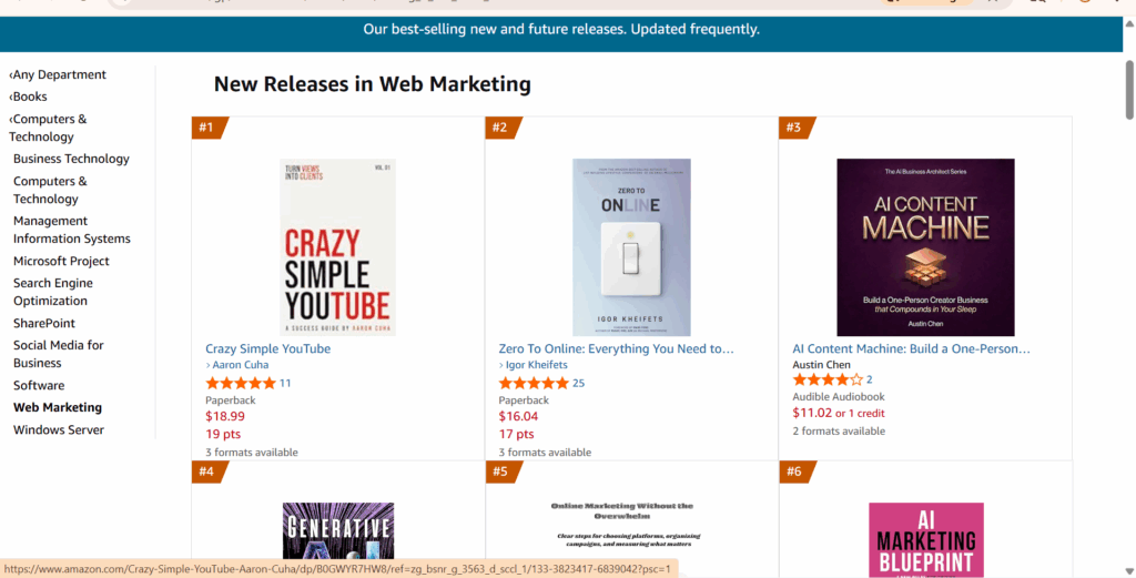 The book simplifies YouTube growth by breaking down practical, easy-to-follow strategies for beginners and content creators. It focuses on how to turn views into real business results without unnecessary complexity or “fluff” advice. Its fast rise to the top reflects a clear demand for actionable digital marketing knowledge, particularly in the YouTube and online content creation space.